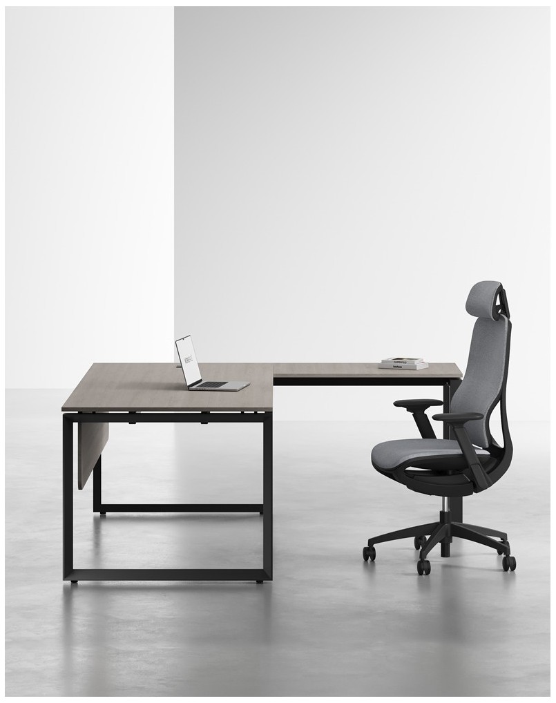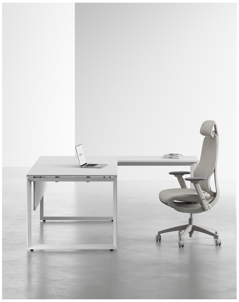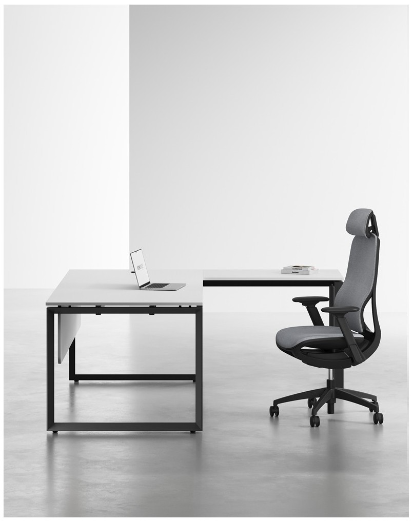Modern desk in powder coated white or black frame finish. The frame sets a strong visual accent and ensures particularly high stability.