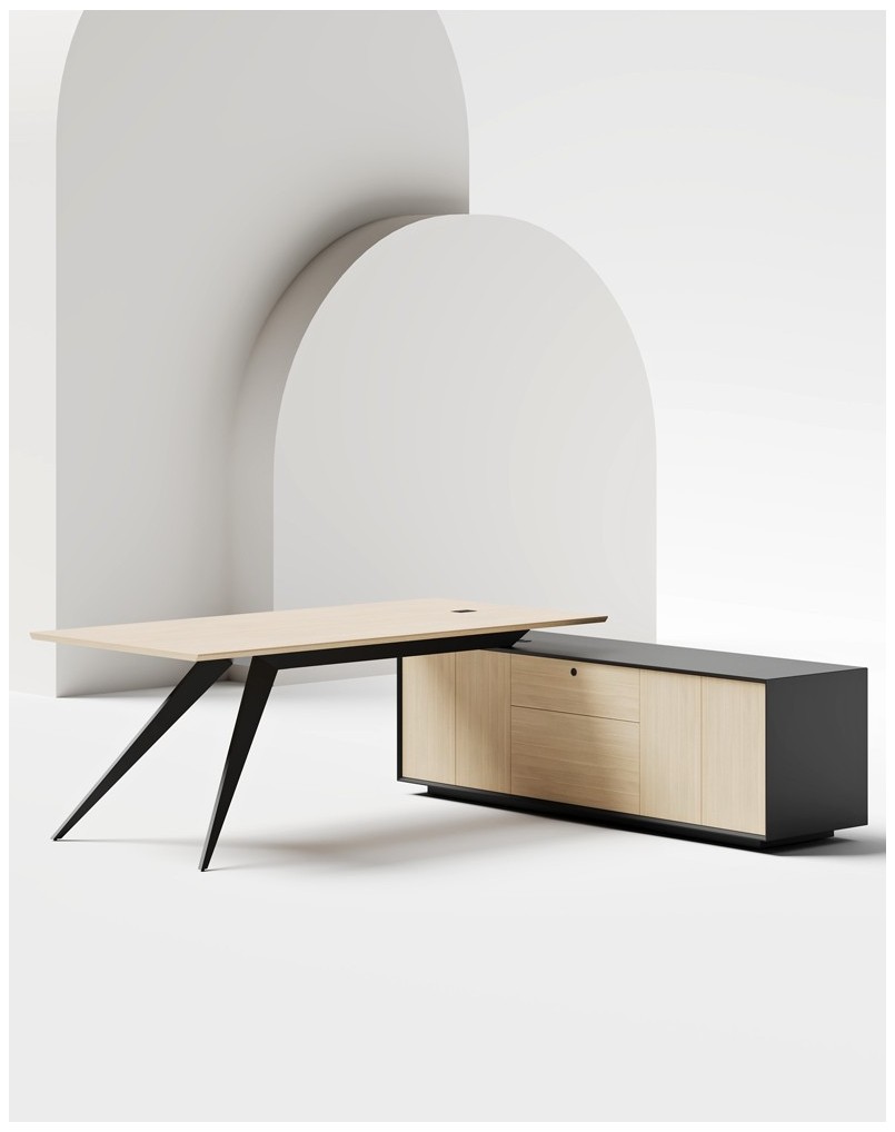 Features a unique modern structure built with a durable steel frame for unwavering stability and high load capacity. The frame is finished with a premium, scratch-resistant powder coating, ensuring long-term durability and a sleek look.