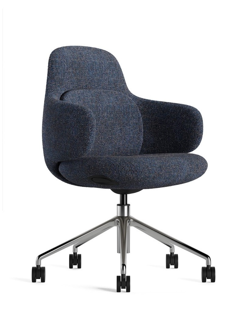 Featuring a clean, minimalist design, this swivel chair offers a soft, supportive form for everyday comfort. The armrests are seamlessly integrated into the backrest, while the swivel mechanism is hidden beneath the seat for a clean, refined look. Ideal for modern offices, and collaborative environments.