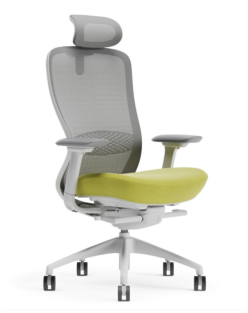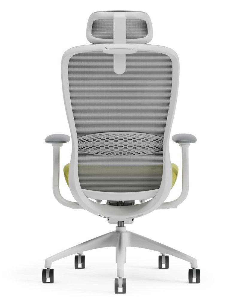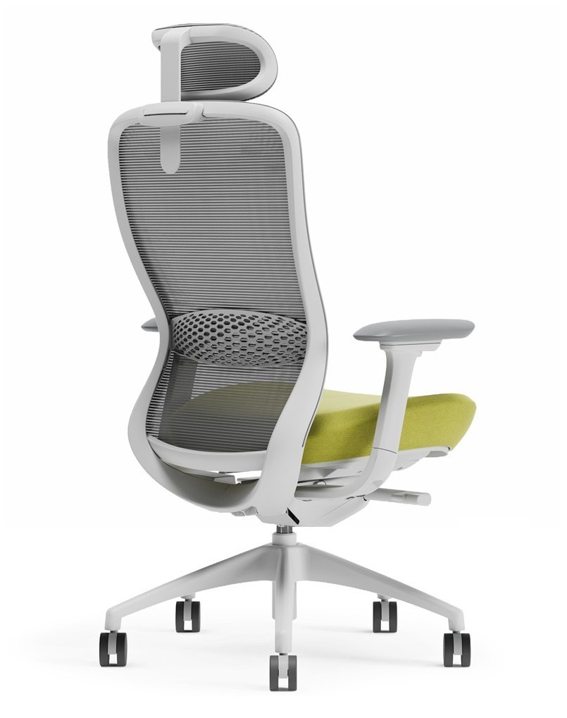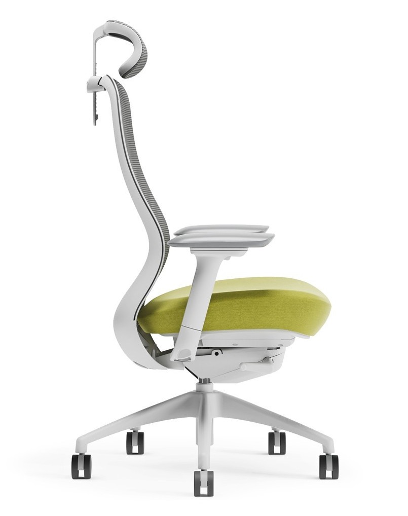 Ergonomic design for ultra comfort, full-function task chair with unique matt white frame
