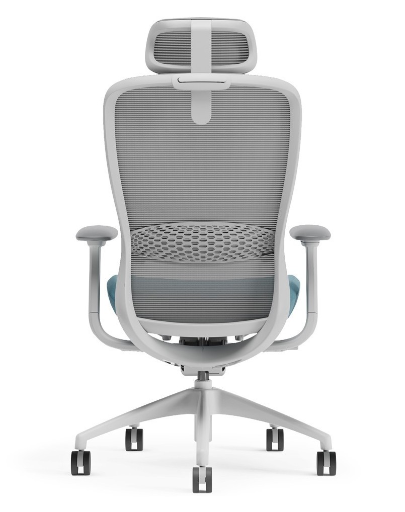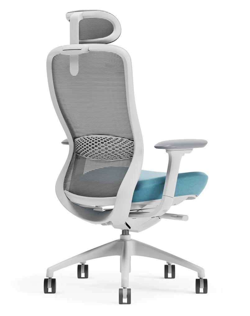 Ergonomic design for ultra comfort, full-function task chair with unique matt white frame and maya blue fabric color.