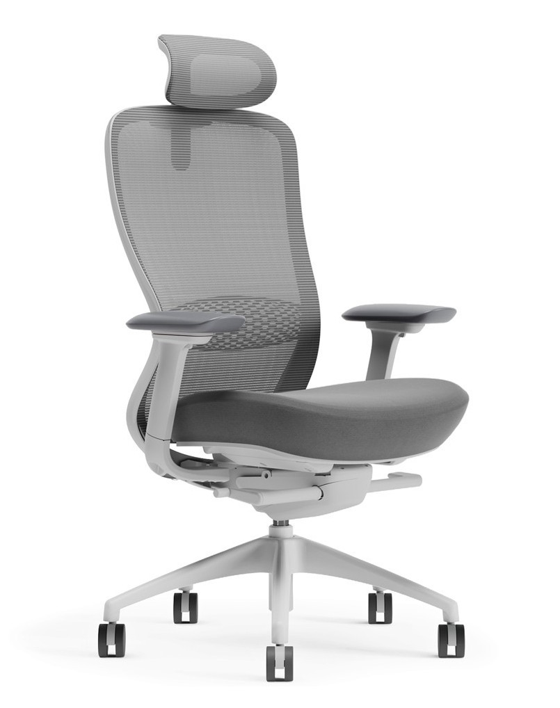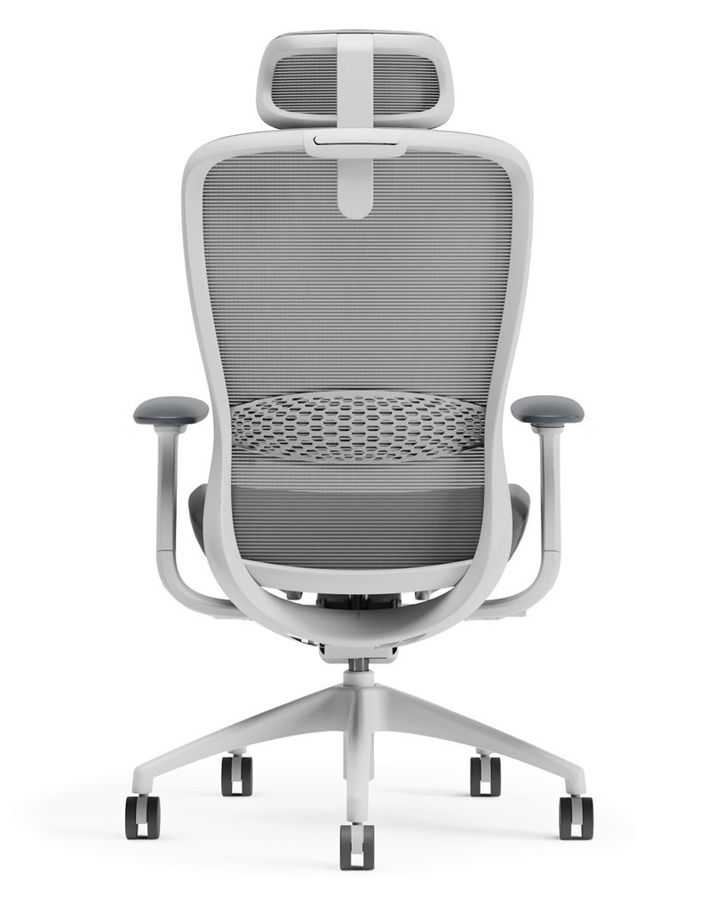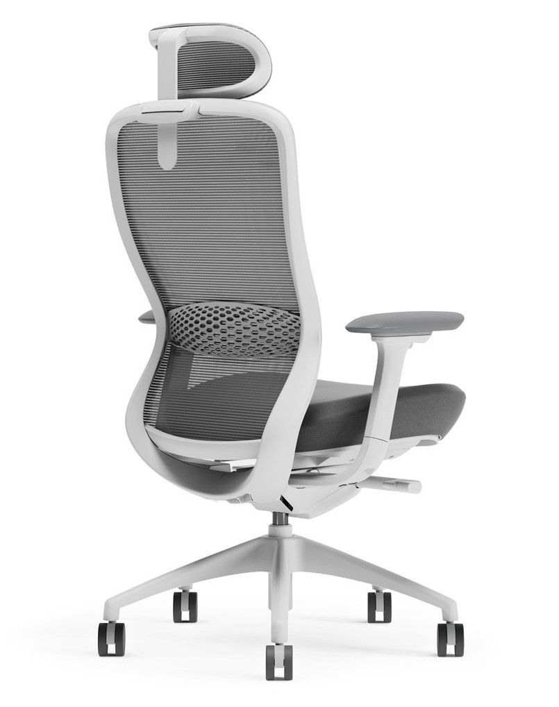 Ergonomic design for ultra comfort with full-function task chair, unique white matt frame, and light grey fabric seat color. This chair has breathable grey mesh back with high density foam, fabric-covered seat cushion for extra comfort. The chair mechanism includes 4d adjustable arm rest, dual wheel castors, adjustable lumbar support, adjustable sliding seat depth, and 4-position tilt lock with easy tilt tension control mechanism.