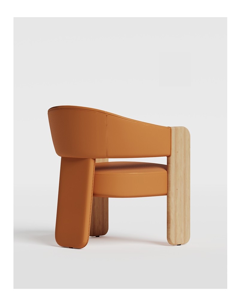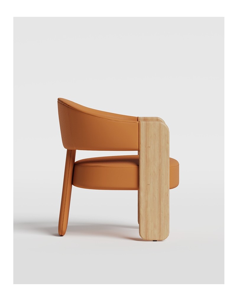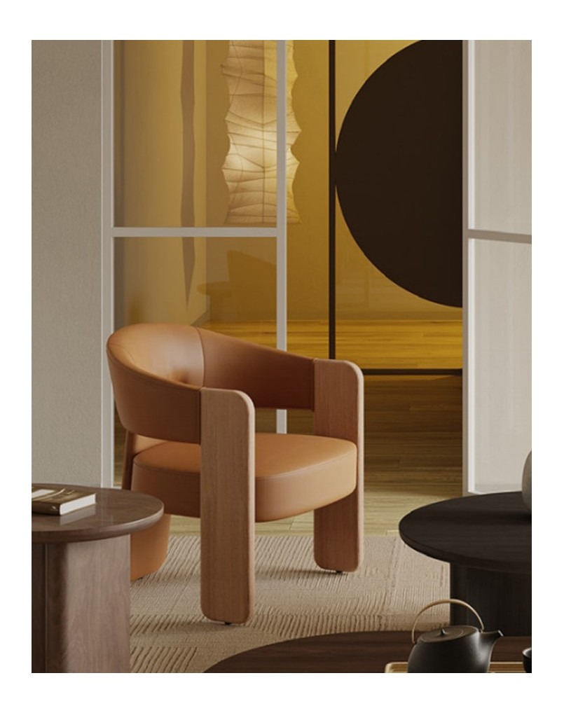 Perfect blend of comfort and style. This contemporary Genuine Leather armchair features a rich, warm tan upholstery and a streamlined North American Ash Wood frame. Distinctive, rounded style, and high-quality materials promise both luxurious seating and timeless appeal.