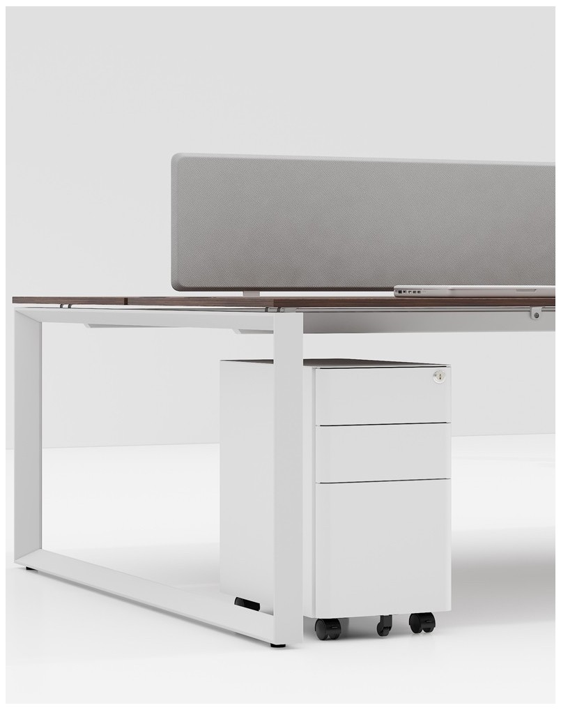 A 3-drawer mobile pedestal designed for smaller desk to maximize the working area making it efficient space-saving storage. Features a pen tray in the top drawer, paper-size organizer in the bottom drawer, full-extension slides, and an anti-tip safety mechanism. Equipped with a central lock with 2 keys and smooth castors with front brakes for stability and easy mobility.